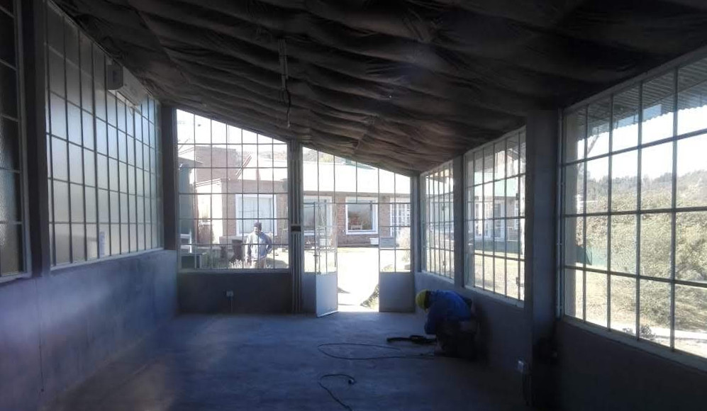 Aislación de techo de chapa mediante celulosa insuflada (10 cm de espesor) sobre cobertura de friselina.